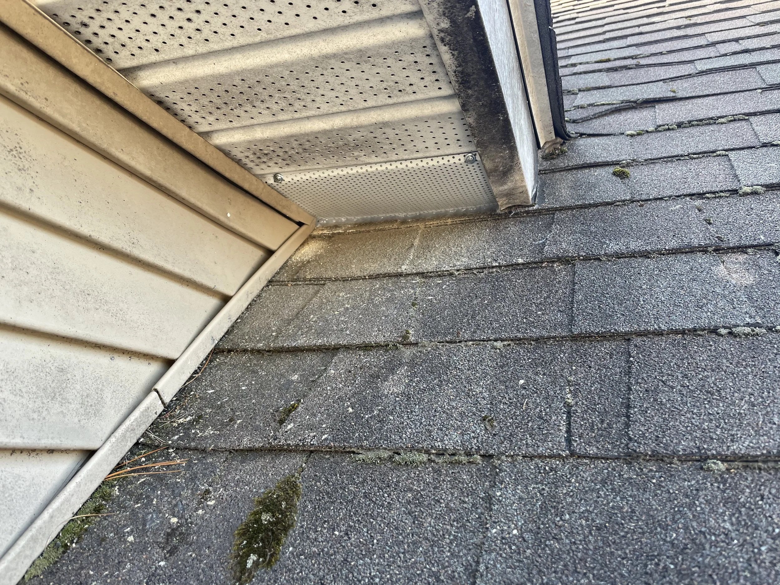 Fascia locations are the boards along the edge of these soffits, but very similarly can be tight up against the siding, in which it is considered a rake board (very similar, just no soffit overhang). Either way, they go hand in hand with soffits as a vulnerable point. Wood homes especially deal with issues under the rake board, as it is very grippy and bats most often take advantage of this cozy space. They don’t always lead into the structure of the roof, and even if they don’t aren’t ideal for homing a colony of bats. As seen in the image, the constant rubbing between the wood and the rake board causes issues. You will often also see bat droppings stuck to the siding or piled up on the ground underneath.
